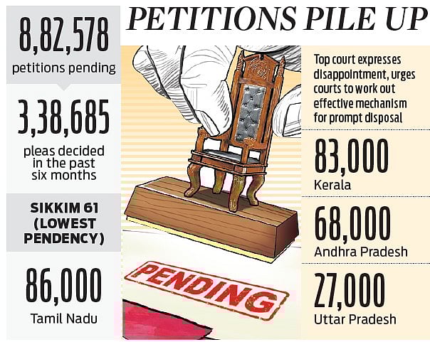 - Over 8.82 lakh execution petitions pending: The Supreme Court's review of nationwide data revealed that over 8.82 lakh execution petitions are pending across district courts.
